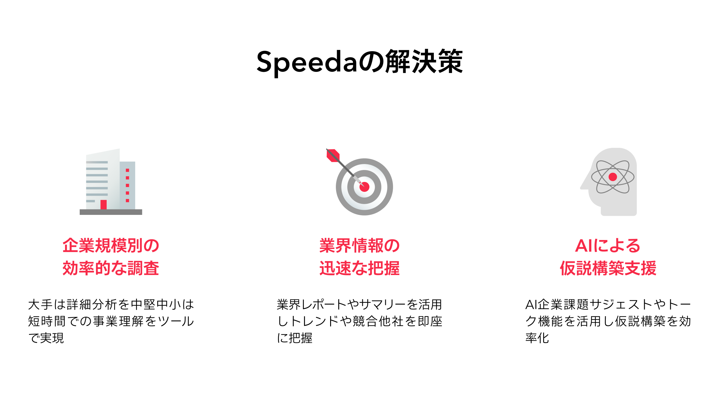 松﨑氏:スピーダは「存在する情報を集約する」ところに長けているサービスであると認識していますが、今後はより「示唆を与えてくれる情報」も提示してもらえるとありがたいです。たとえば直近でも顧客の課題について示唆を出してくれる「AI企業課題サジェスト」機能は役立っています。