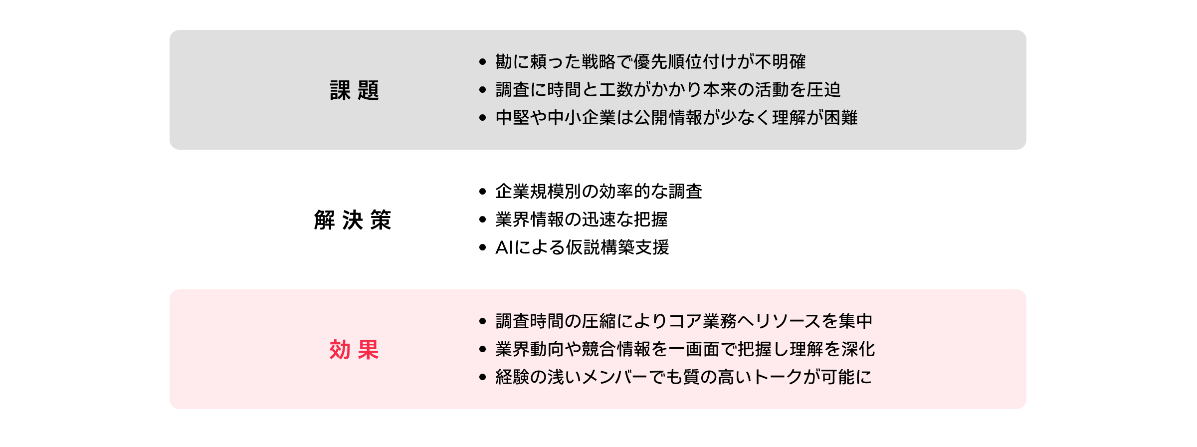 中堅・中小向け:1社あたりの情報収集を最速で行い、より多くの顧客にアプローチ