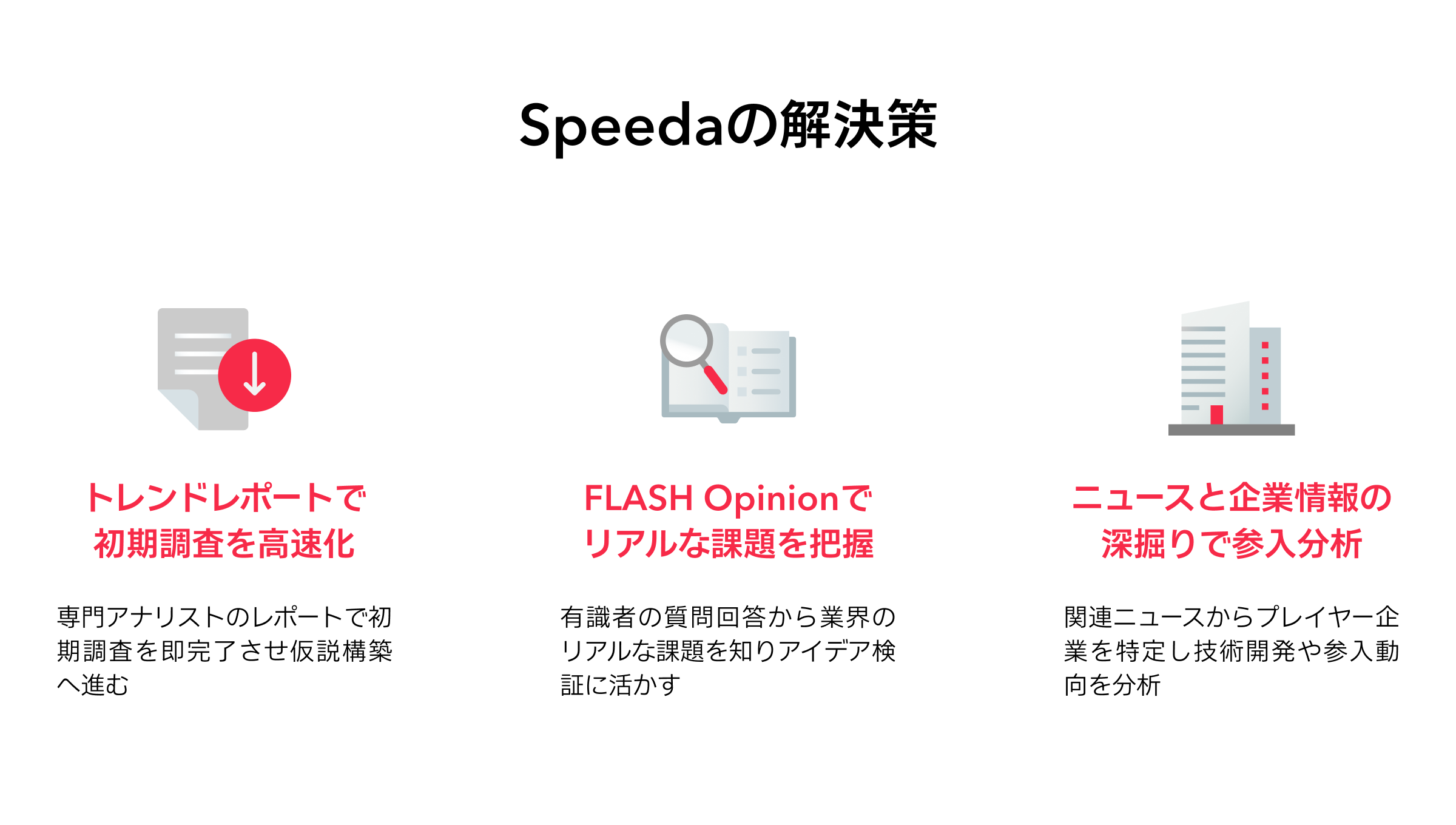 そのためには、トレンドレポートとニュースの情報が必須です。新規事業開発における「多産多死」を実現するには、スピーダ R&D分析が欠かせません。