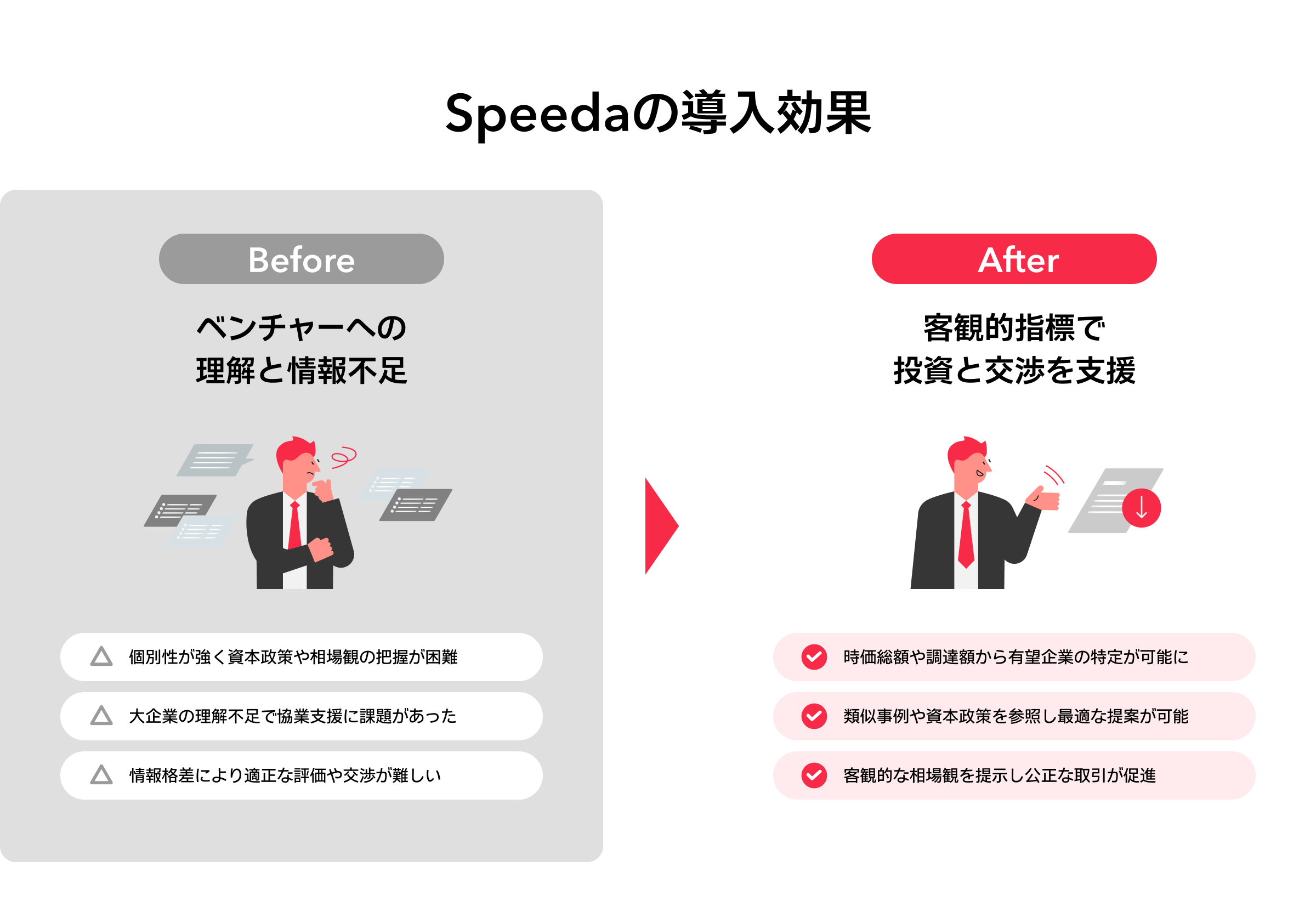 ベンチャー企業のファイナンス支援の際には、スピーダ スタートアップ情報リサーチに立ち返ってスタートしています。