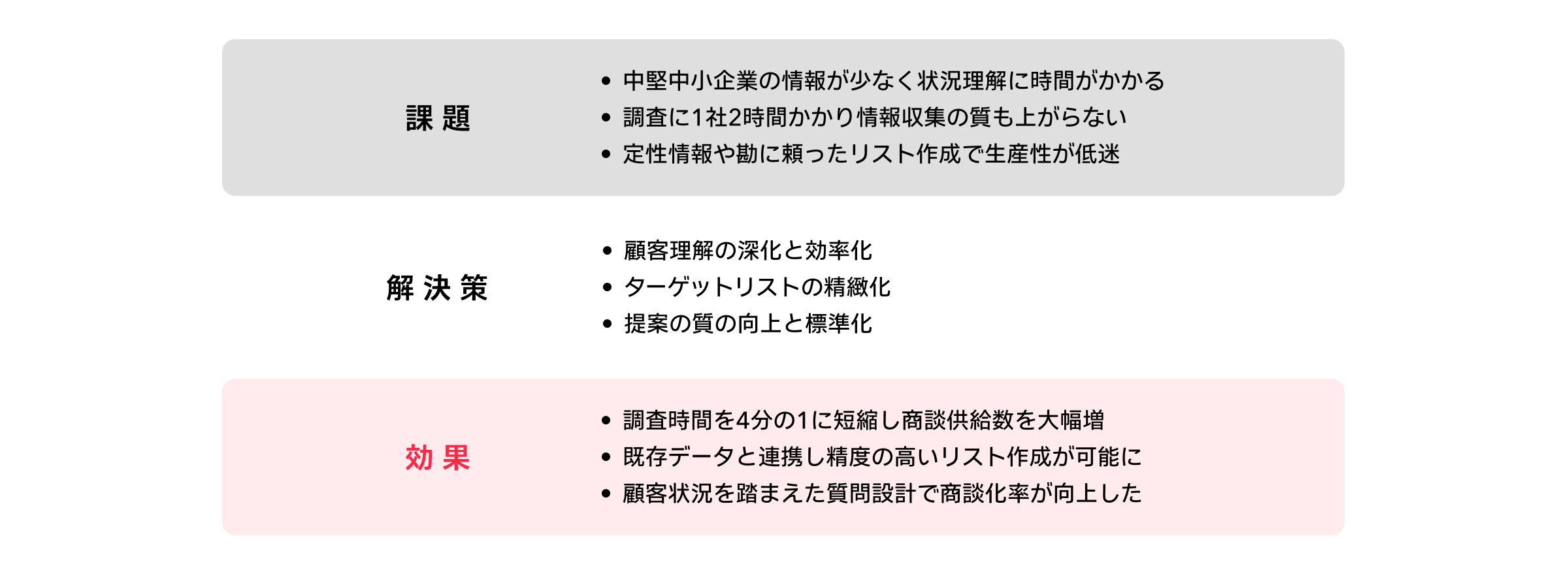 「調査時間を4分の1に短縮し、インサイドセールス一人当たりの商談供給数を大幅にアップすることができました。」