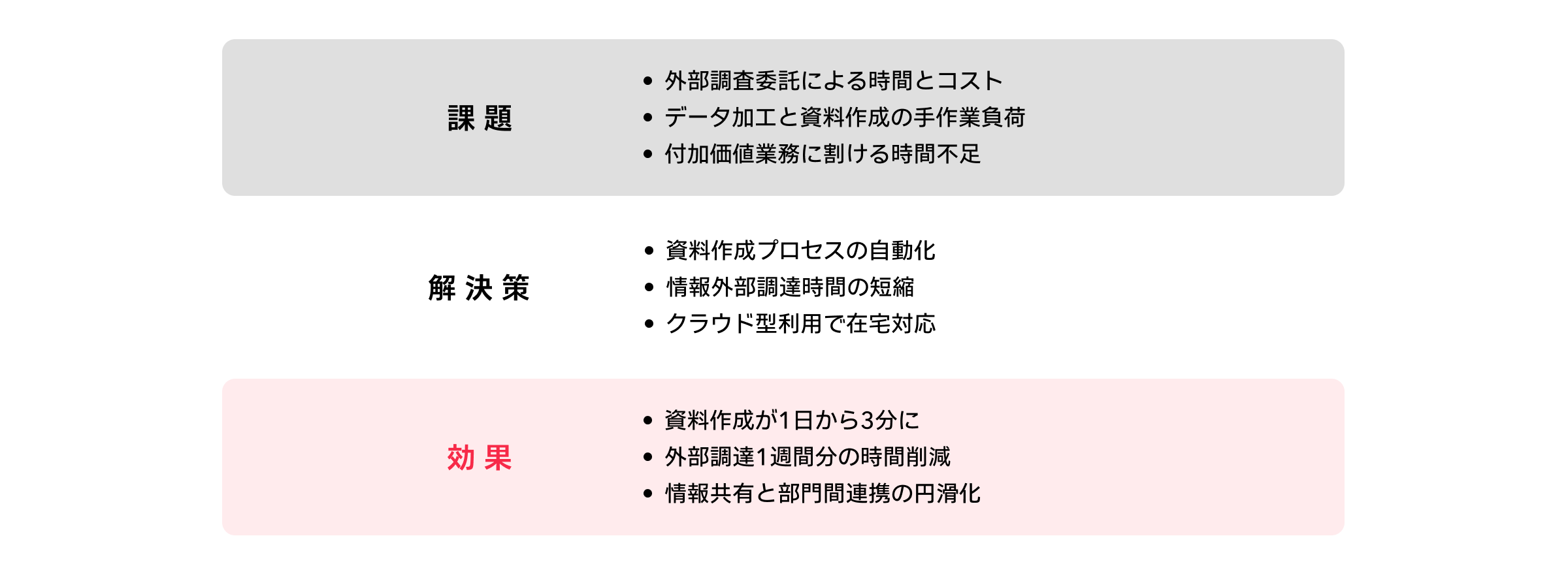 資料作りの手間と情報の外部調達コストを大きく効率化