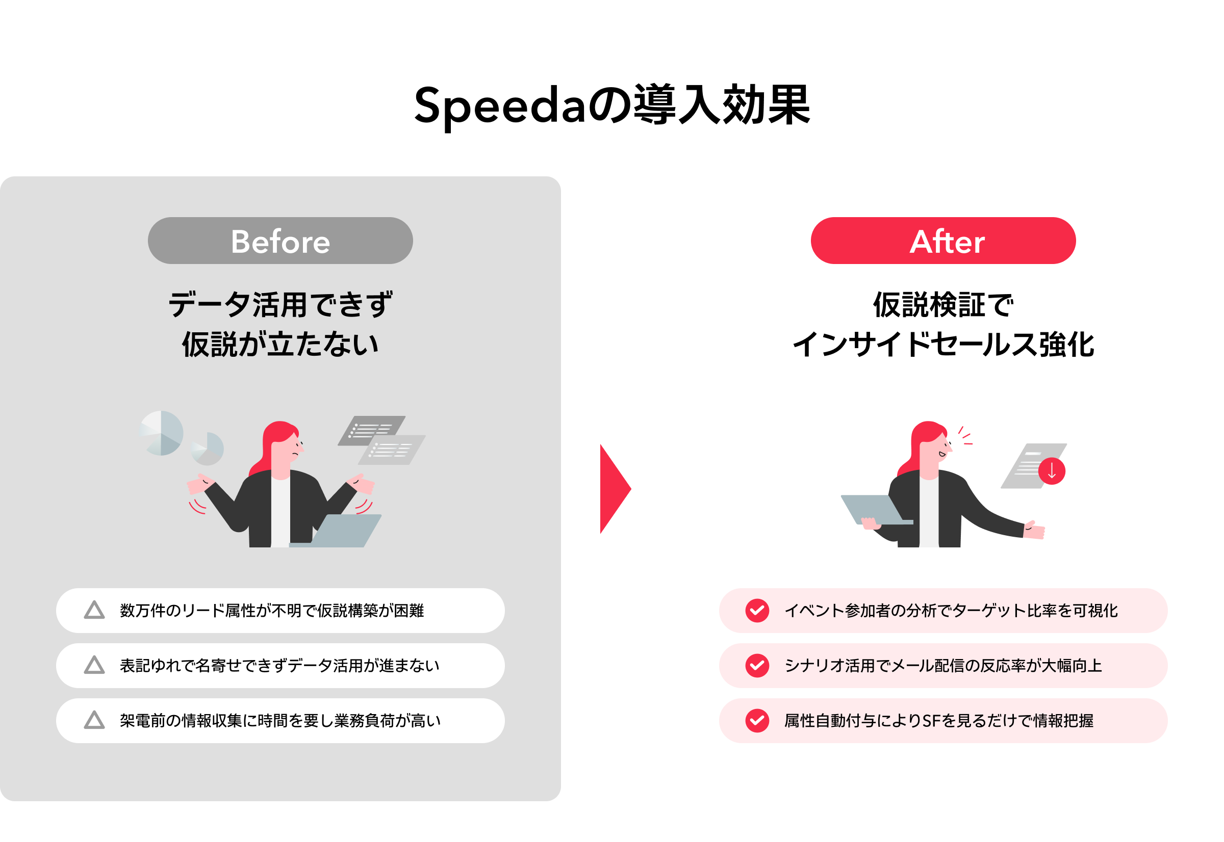 鈴木様: そうですね、自分たちでターゲティングの仮説を立てるようになりました。インサイドセールスからのアプローチ先やアプローチ方法を考えて、結果を見て改善するサイクルが回り始めています。