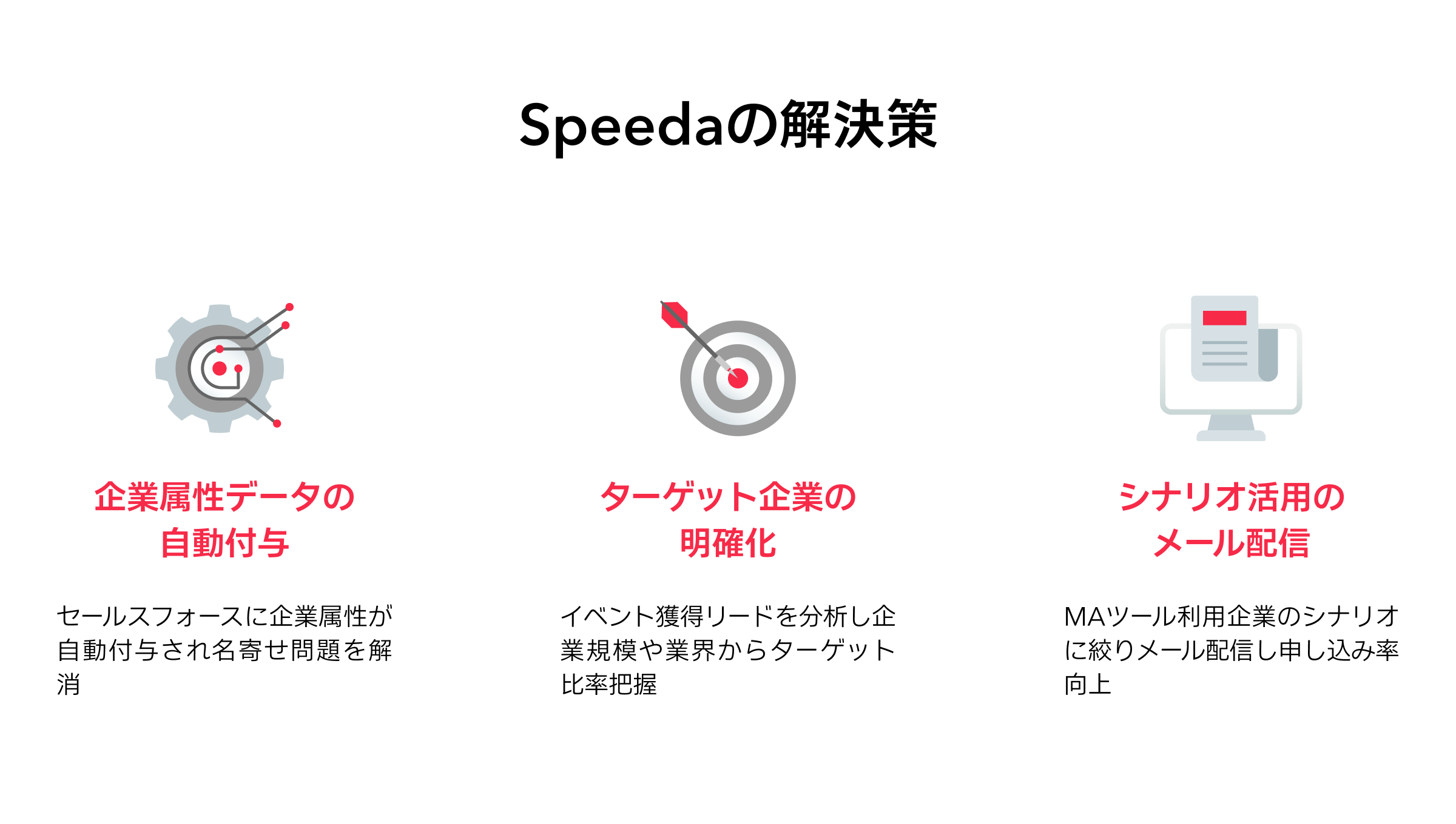 谷井様: メール配信のターゲティングでも、スピーダ 顧客企業分析の「シナリオ」データを活用することでセミナーの申し込み率が向上しました。例えば「MAツールを利用している企業」というシナリオがあるのですが、そのシナリオを持つ企業だけに絞ってメールアプローチする取り組みをしています。数値成果にもかなり差が出ています。