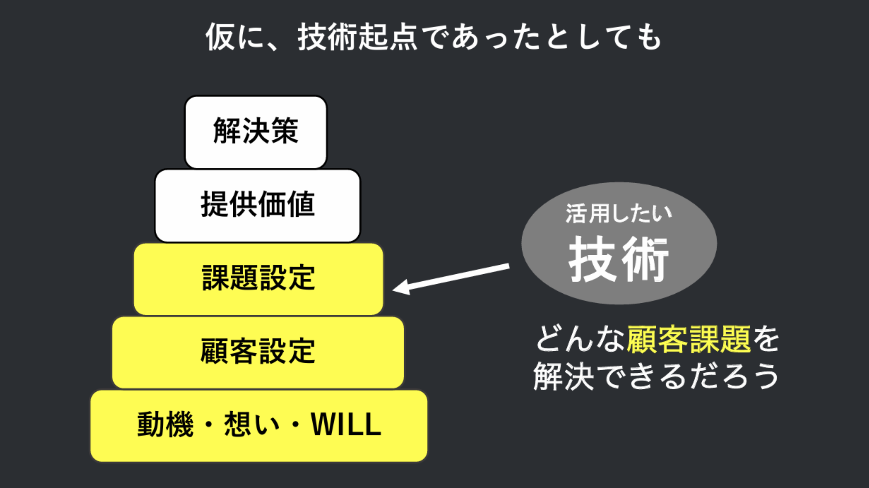 技術起点の新規事業であっても、どんな顧客課題を解決できるのか、から始めた方がよいでしょう。