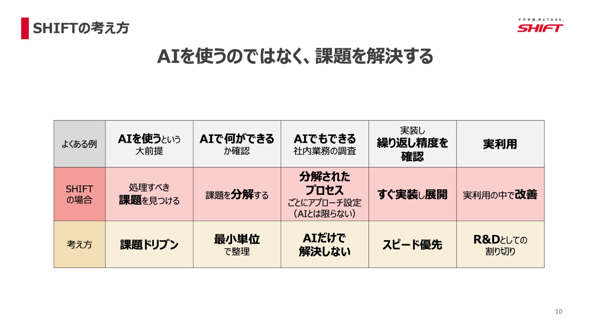 ──ツールを作っても「現場に浸透しない」「AI活用が停滞する」といった壁にぶつかる企業も多いです。この壁をSHIFTではどう乗り越えたのか、あらためてお教えいただけますでしょうか。