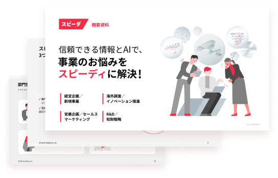 汎用AIは一般的な情報提供に留まりますが、Speedaは企業・業界に特化した信頼性の高いデータ(上場・非上場問わず)と、営業活動に最適化されたAI機能を提供します。