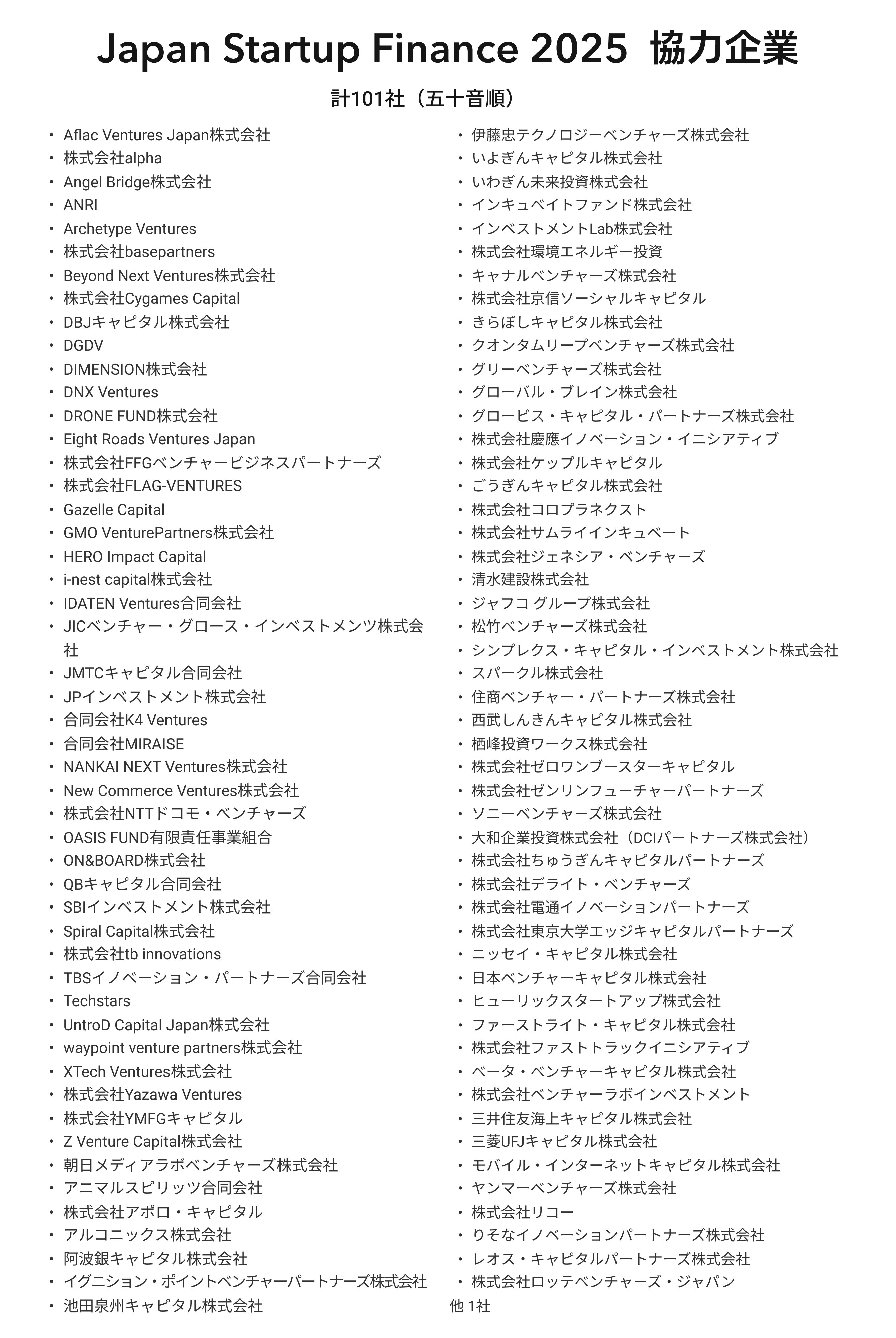 「スタートアップ育成5か年計画」が後半戦に突入し、社会実装への期待が一段と高まる中、本レポートが日本のスタートアップ業界の現在地を正しく示す一助となれば幸甚です。